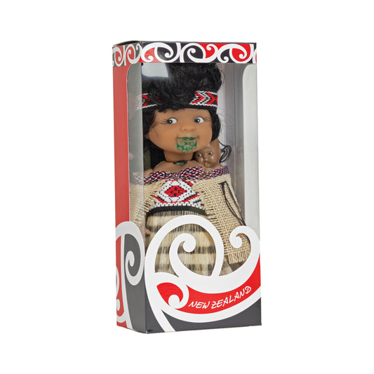 Vendor:Parrs Products Ltd.28 - Doll 17cm Wahine Full Feather Cloak Piupiu Skirt Baby Boxed